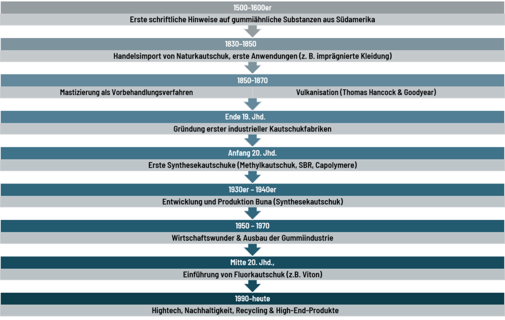 Diese Chronologie verdeutlicht, dass die deutsche Gummiindustrie immer wieder auf externe Herausforderungen – von Rohstoffengpässen bis hin zur Globalisierung – mit Innovation reagiert hat.